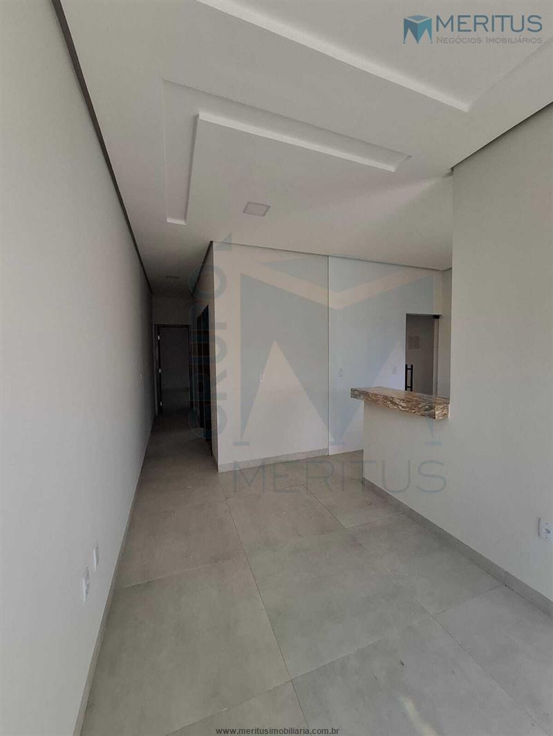O imóvel dispõe de 2 quartos, sala espaçosa para 2 ambientes, cozinha americana com bancadas em granito, banheiro social com nicho, área de serviço coberta e garagem com capacidade para até 2 veículos. O acabamento é um dos grandes diferenciais: rebaixamento em gesso, piso em porcelanato e cobertura com telhado colonial que une charme e durabilidade.